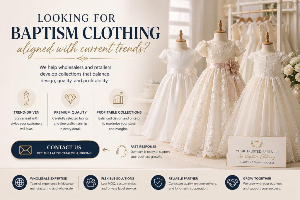 For wholesalers, boutiques, and brand retailers, baptism clothing is a stable and profitable niche. Understanding current trends helps buyers select styles that align with market demand and improve sell-through rates.