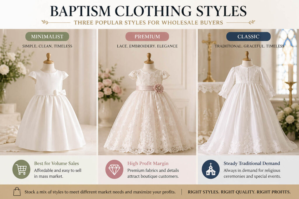 Baptism clothing is not driven by fast fashion cycles but by tradition, cultural expectations, and seasonal ceremonies. This makes it a reliable category for long-term sales.